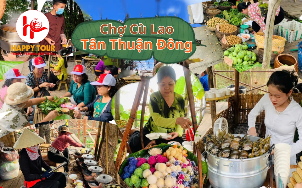 Chợ quê tại Cồn Tân Thuận Đông hoạt động từ tháng 3/2022, với hơn 35 gian hàng gần 70 hộ dân tham gia hoạt động buôn bán. Cứ mỗi chiều thứ 7 từ 13h00 đến 19h00 người dân buôn bán chủ yếu các vật từ địa phương như trái cây theo mùa như ổi, xoài cát, mận xanh, nhãn tiêu,…; các món ăn đặc trưng như ốc nhồi hấp sả, cá nướng, chuột nướng…; các loại bánh như khoai mì, bánh xèo, bánh ít trần, bánh bèo, bún riêu,…. rất đa da dạng phong phú. Quý khách tự do tham quan, mua sắm và thường thức những món ngon tại đây.