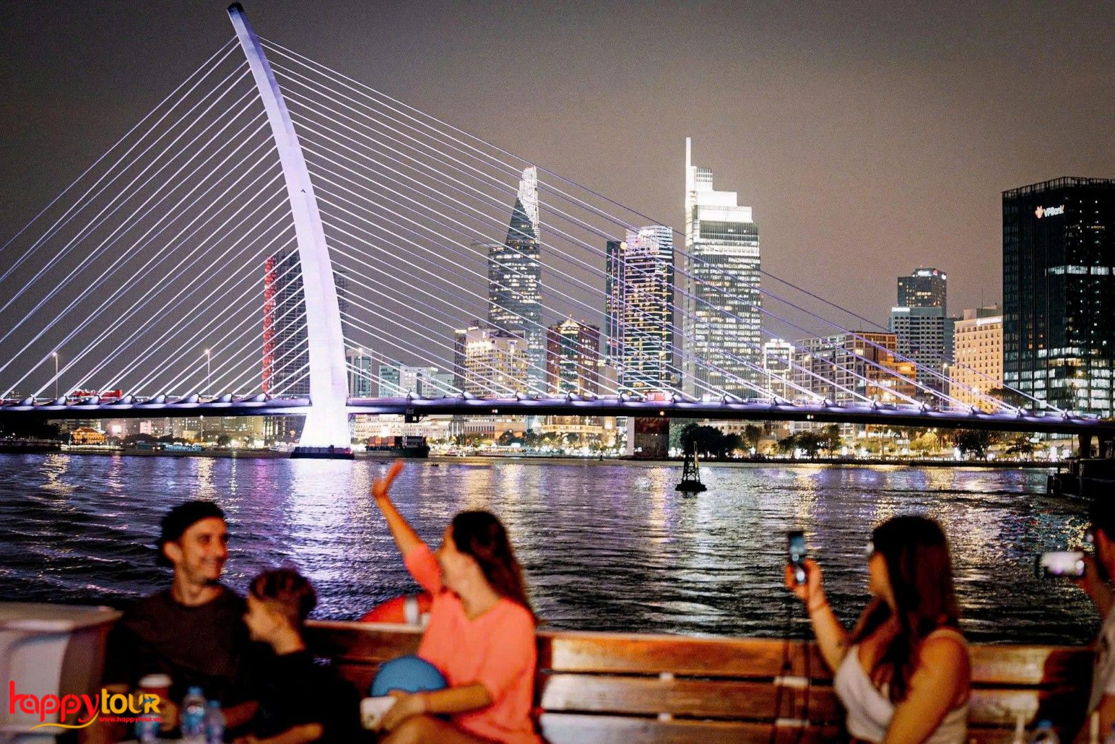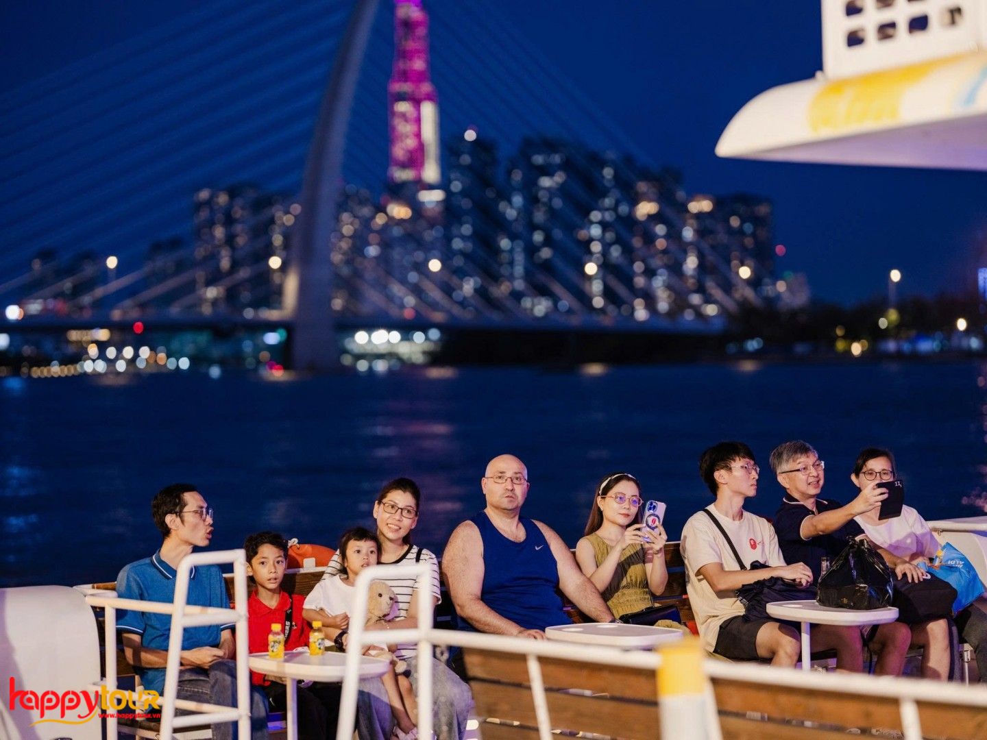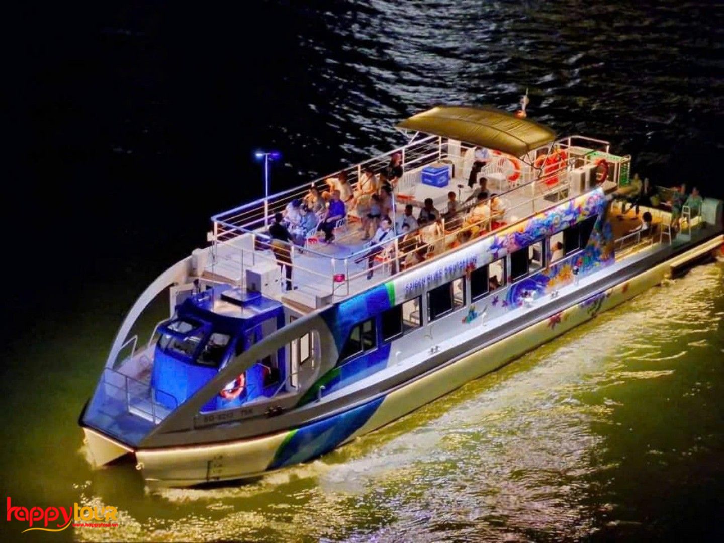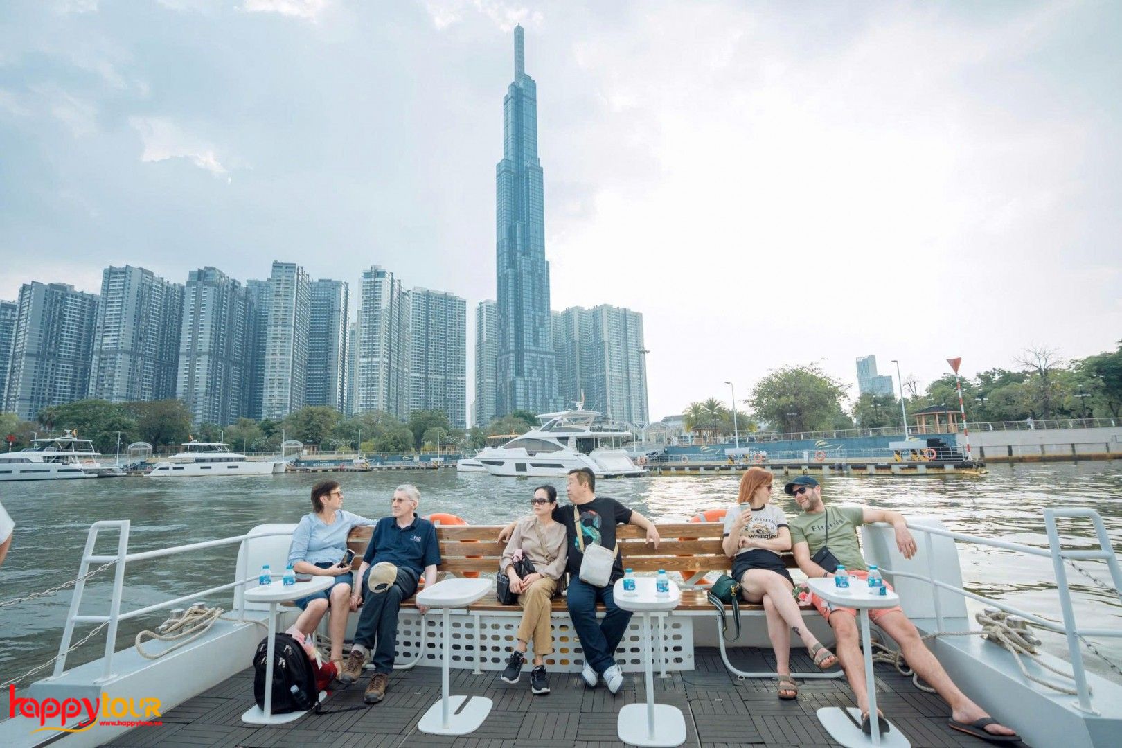 Quý khách lên tàu tại bến Bạch Đằng, sau đó tàu Saigon RiverSight Seeing sẽ đưa Quý khách ngắm cảnh sông Sài Gòn, đi qua: Cột Cờ Thủ Ngữ - Bến Nhà Rổng - Cảng Bến Nghé - Công viên hoa hướng dương - Cầu Ba Son - Landmark 81. Sau một hành trình 45', tàu sẽ đưa Quý khách về lại điểm đón ban đầu, kết thúc hành trình.