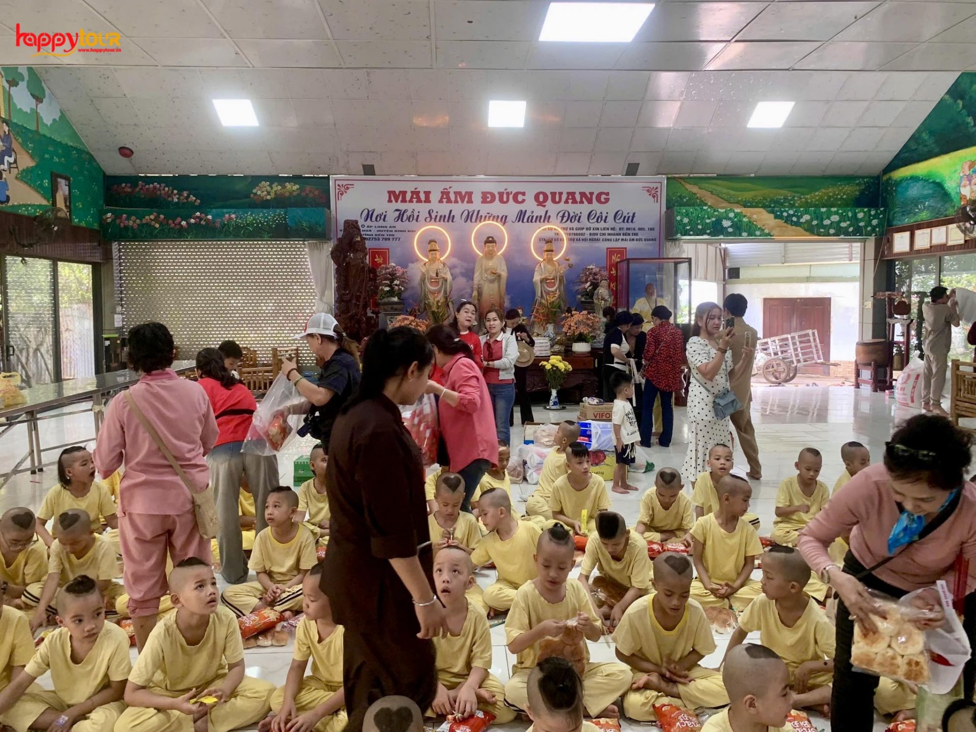 Đoàn đến Mái Ấm nuôi day trẻ mồ côi -  nơi nuôi dạy hơn 80 trẻ em mồ côi và có hoàn cảnh khó khăn đang nương tựa cửa Phật. Tại đây, Quý khách có thể gửi tặng những phần Quà của mình đến tận tay các bé.