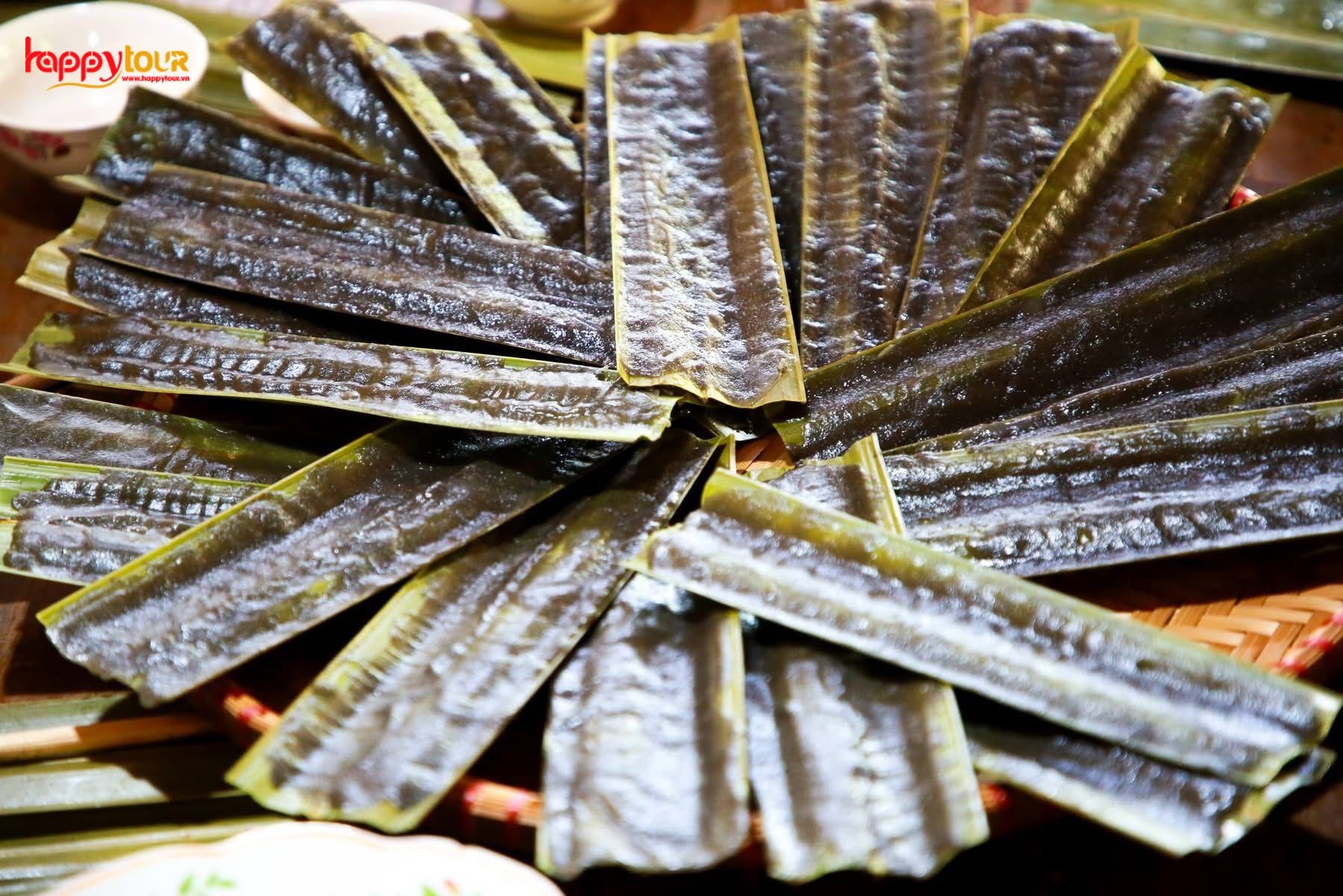 - Bánh lá Ba Việt: đặc sản đãi khách là “bánh lá rau mơ” và “nước cốt dừa vị gấc”