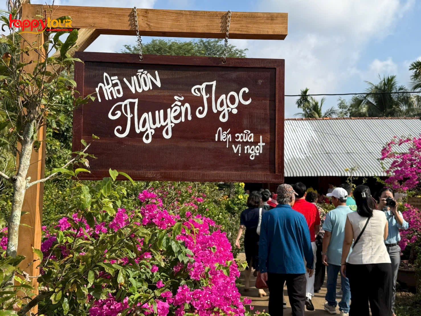 - Nhà vườn Nguyễn Ngọc: đặc sản đãi khách là “mâm mứt của vòng đời hạnh phúc” và “chén xưa bánh lọt mát ngọt tình quê”