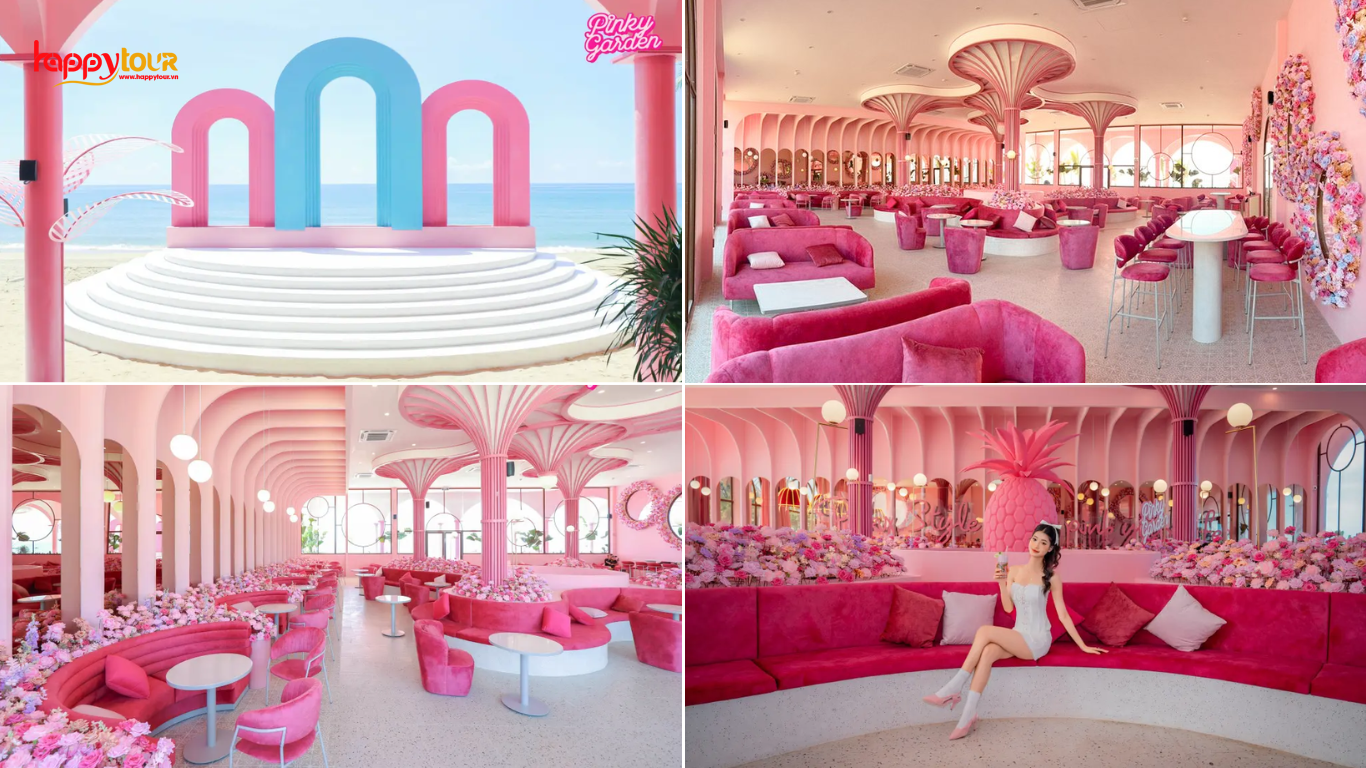 Quán café Pinky Garden - là một điểm đến mới nổi tại Phan Thiết, thu hút du khách bởi không gian ngọt ngào, lãng mạn với tông màu hồng chủ đạo cùng phong cách vintage độc đáo cùng nhiều góc sống ảo: Bức tường hồng, xích đu, cầu thang, tiểu cảnh (Chi phí nước uống tự túc order -nếu có nhu cầu)